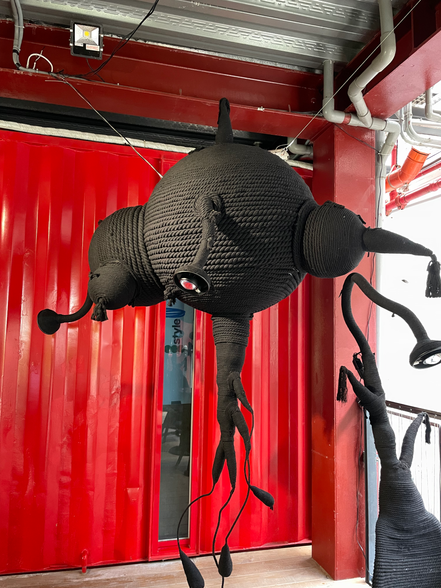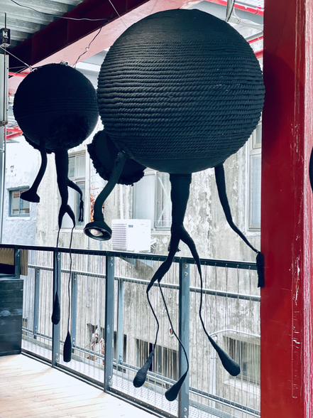 黑色球體是捨己的象徵,燃燒自己照亮所愛的人,不斷延伸的觸角是默默照亮他人時溫暖了自己,使本體不斷成長茁壯,甚至影響他人。同時也要反思,愛不該被視為理所當然,就像生活一切順利如陽光充足美好的狀態下,默默付出的愛總是被忽視或習以為常,如那黑色球體的光在白天看不到也摸不到,總是要到黑暗寵罩與苦難來臨,才會發現一直給予自己照躍溫暖的是誰,因此,期許我們能時刻彼此重視彼此照躍,在黑暗中照出希望,尤其是在這混亂不堪的世代。